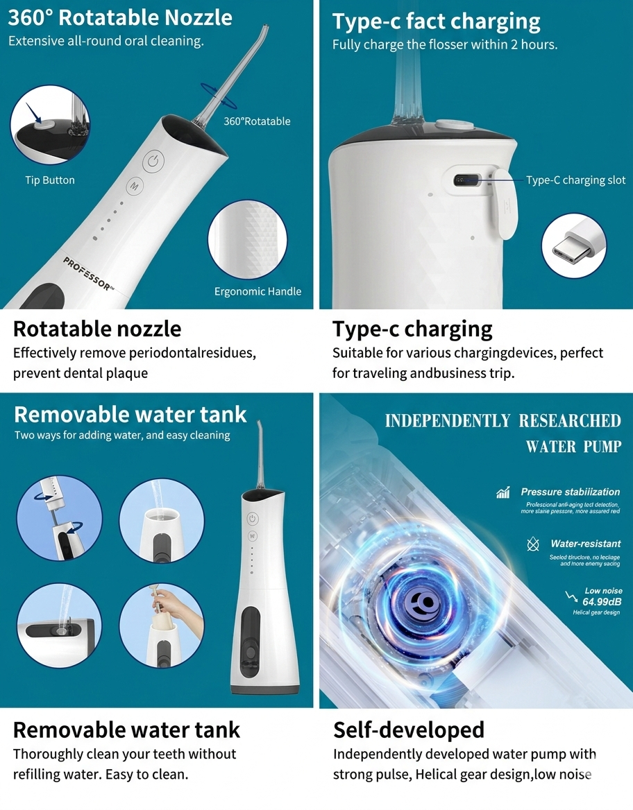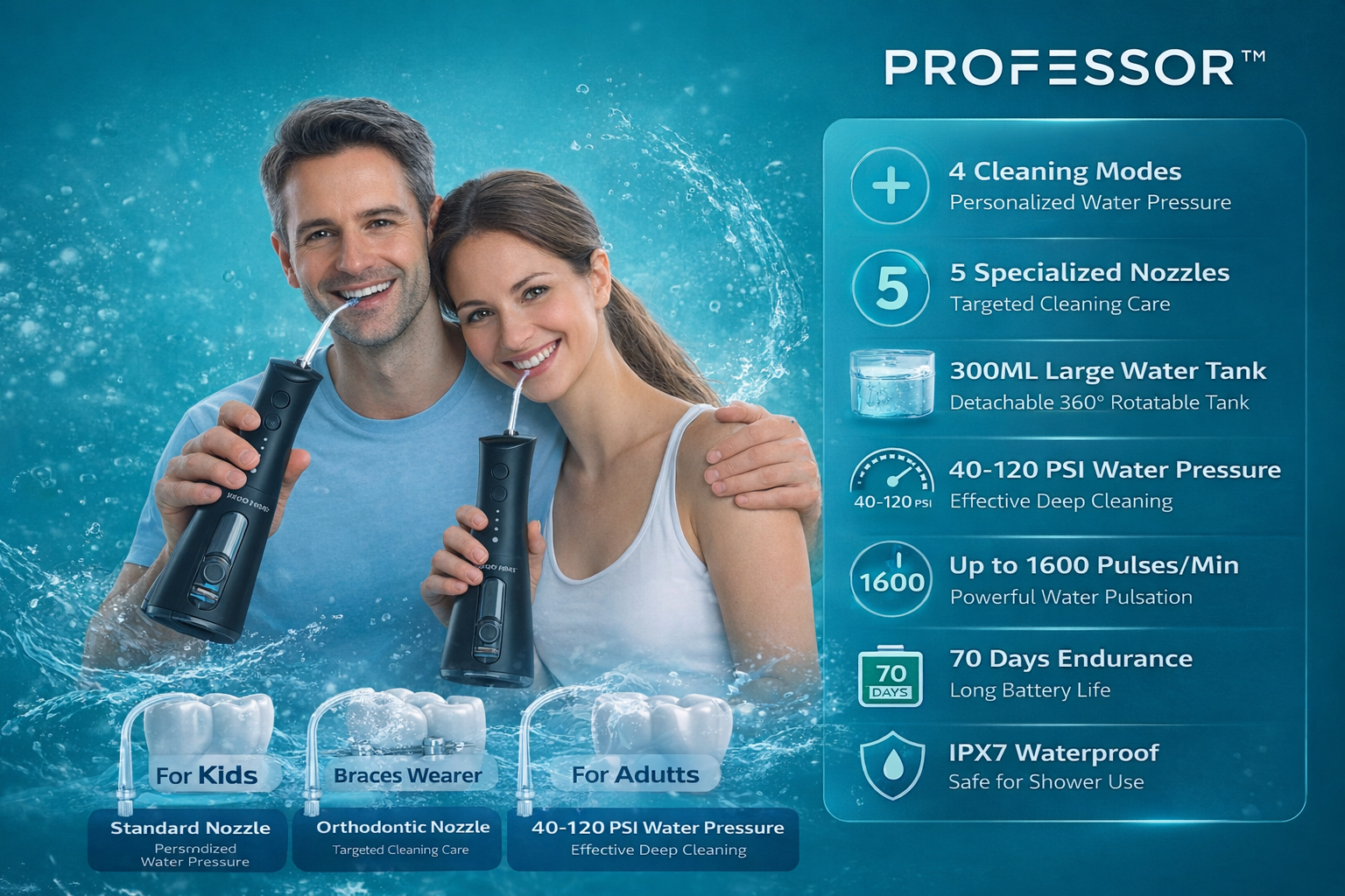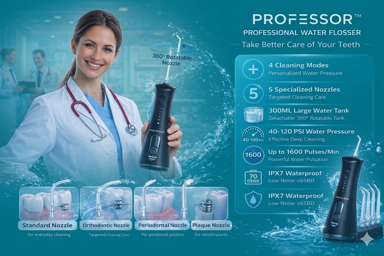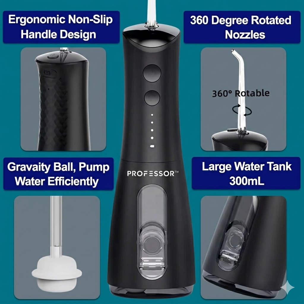 Experience a deeper, healthier clean with the Professor Water Flosser for teeth.